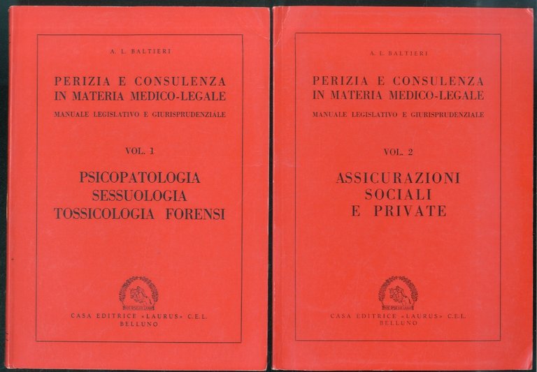 Perizia e consulenza in materia medico-legale. Manuale legislativo e giurisprudenziale. Vol. I: Psicopatologia, sessuologia, tossicologia forensi. Vol. II: Assicurazioni sociali e private.