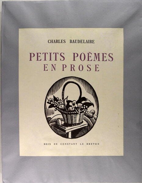 René Kieffer, éditeur et relieur d'art, 25 août 1922, in/4 broché, couverture factice, exemplaire non coupé, 284 pages. Gravures sur bois de Constant le Breton. 50 poèmes en prose.