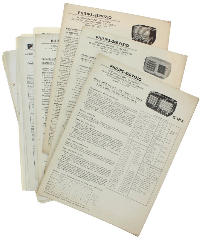 PHILIPS [RADIO e altri prodotti]- DOCUMENTAZIONE DI SERVIZIO AD USO DEI LABORATORI PRESSO I RIVENDITORI (Strettamente confidenziale).