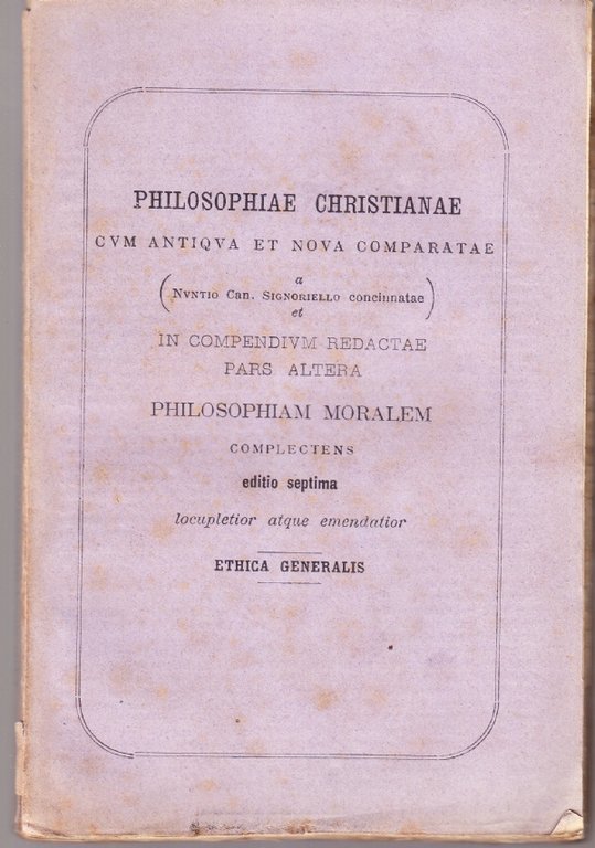 PHILOSOPHIAE CHRISTIANAE. Philosophia moralis pars I. Ethica generalis