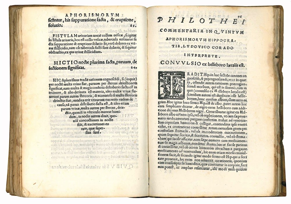 Philothei medici praestantissimi Commentaria in aphorismos Hippocratis. Nunc primum e graeco in Latinum sermonem conversa Ludovico Corado Mantuano interprete