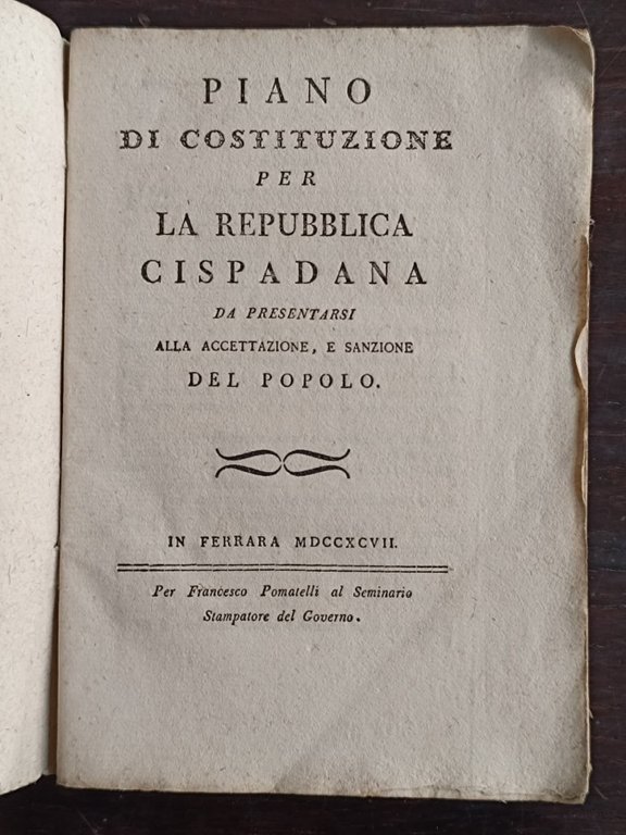 Piano di costituzione per la Repubblica cispadana da presentarsi all'accettazione, e sanzione del popolo.