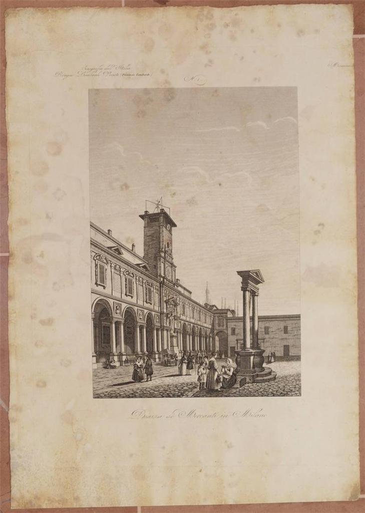 Bella acquaforte del 1842-45, tratta dall'opera "Corografia fisica storica statistica d'Italia" dello Zuccagni Orlandini. La veduta animata rappresenta una scena di vita quotidiana nella Piazza dei Mercanti a Milano.<BR>Testo in lingua italiana. In discrete condizioni, fioriture, segni di umidità. Rifilatura al margine inferiore. TECNICA: Acquaforte DIMENSIONI FOGLIO: cm 46x32,5 DIMENSIONI INCISIONE: cm 28,5x19 EPOCA: 1842/45. Beautiful etching of 1842-45 taken from the work "Corografia fisica storica statistica d'Italia" by Zuccagni Orlandini. The animated view represents a scene of daily life in the Piazza dei Mercanti in Milan. Text in italian language. In fair conditions, foxings. Humidity signs. Lower edge has been cut TECHNIQUE: Etching LEAF SIZE: cm 46x32,5 PRINT'S SIZE: cm 28,5x19 PERIOD: 1842-45