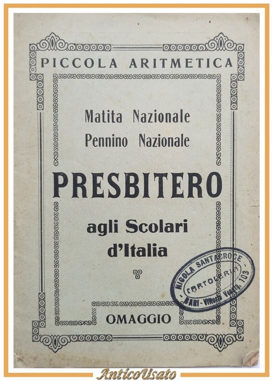 PICCOLA ARITMETICA agli Scolari d'Italia 1932 Presbitero Matita Nazionale Libro