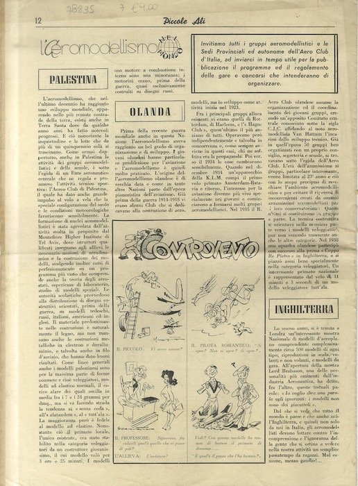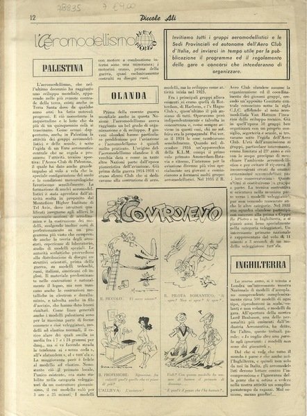 Piccole ali: periodico degli aeromodellisti italiani: N. 1, 20 Gennaio 1946.