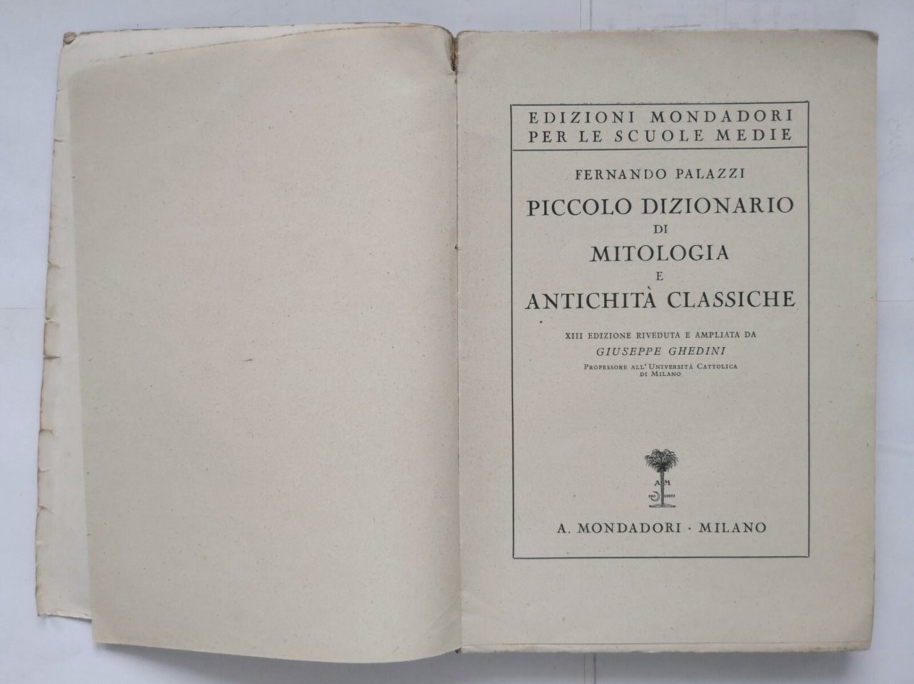 PICCOLO DIZIONARIO DI MITOLOGIA E ANTICHITÀ CLASSICHE di Fernando Palazzi e Giuseppe Ghedini.