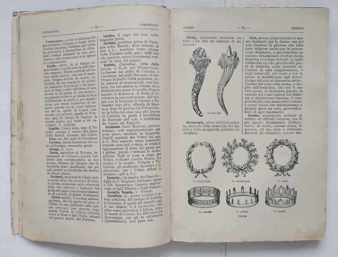 PICCOLO DIZIONARIO DI MITOLOGIA E ANTICHITÀ CLASSICHE Palazzi Ghedini 1938 Libro