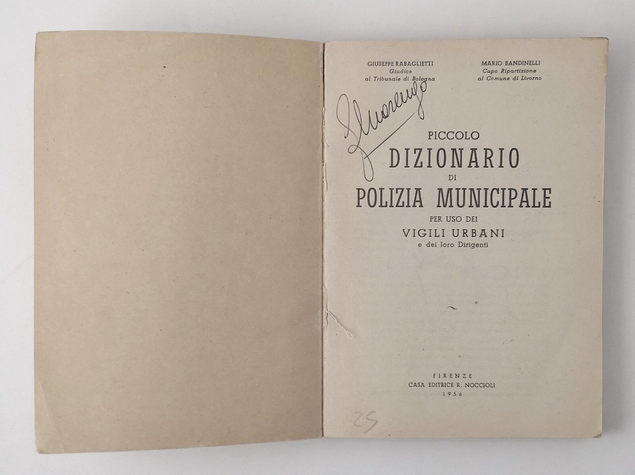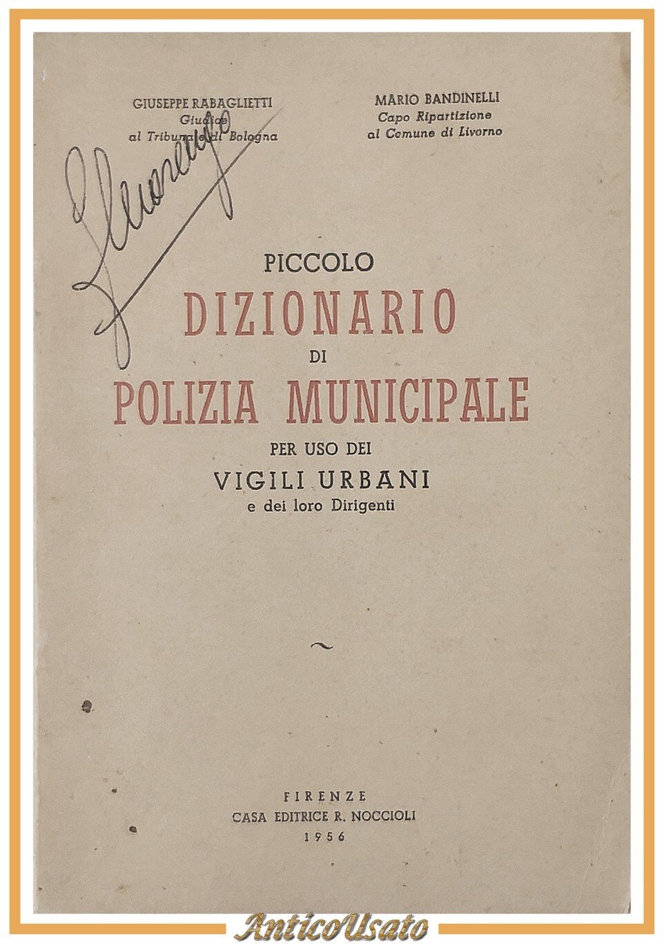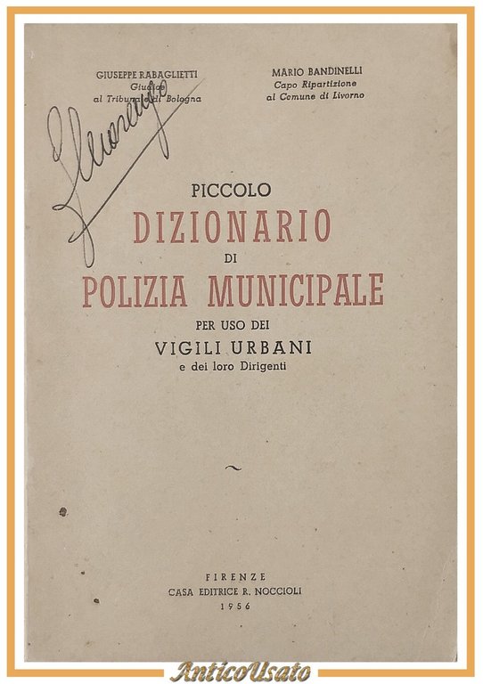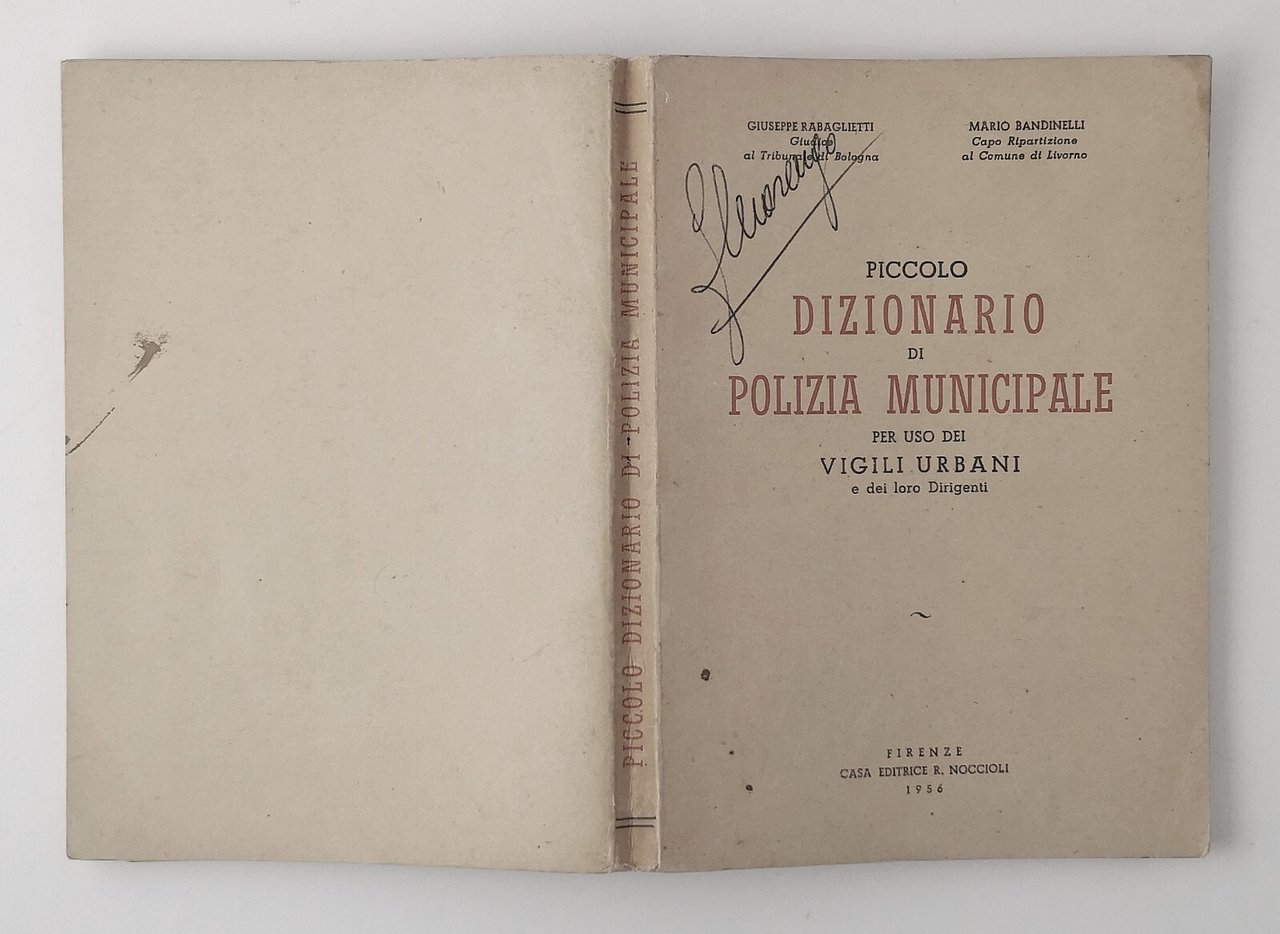 PICCOLO DIZIONARIO DI POLIZIA MUNICIPALE di Rabaglietti e Bandinelli 1956 Libro