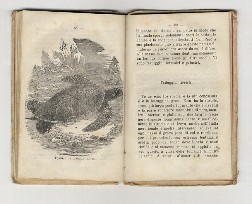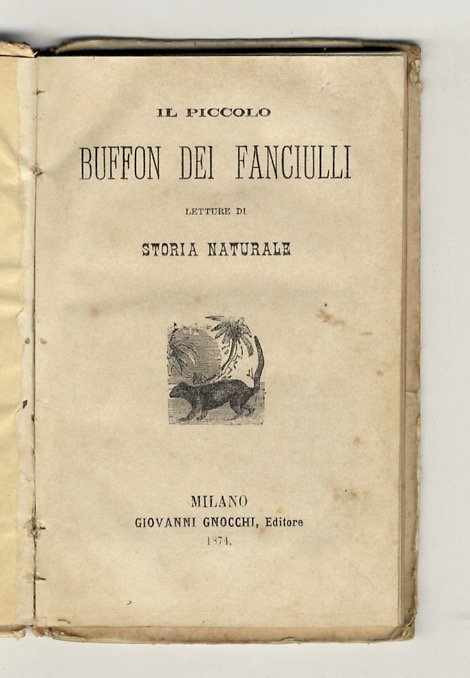 Milano, Gnocchi, 1874, in-16, cartone coevo con fregi tipografici e titolo: “Libro di premio” (manca il rivestimento di carta al dorso), pp. 110. Con figure in bianco e nero. Ex-libris Caproni. Potrebbe mancare l'occhietto.