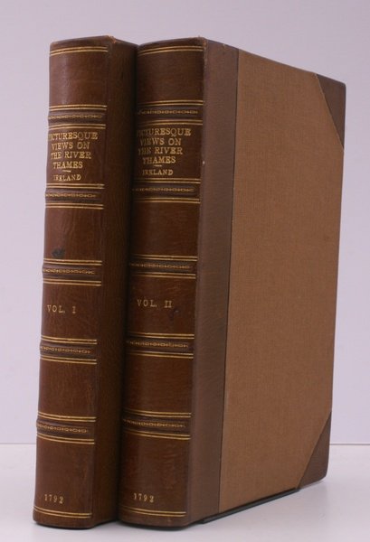 2 vols., 8vo., First Edition, Large Paper, with engraved pictorial titles, printed titles, 53 fine sepia aquatint plates, 21 woodcut illustrations in the text and 2 full-page maps, mild dust-soiling at blank margins, some offsetting from plates to facing pages; attractively bound in early twentieth century crushed brown half morocco, brown cloth boards, back with five raised bands tooled in gilt, second and fourth compartments lettered and numbered in gilt, all other compartments ruled in gilt, a bright, firm copy. With half-titles, and errata leaf at end of each volume. The aquatint titles and plates are engraved by C. Apostool after Ireland. LARGE PAPER COPIES ARE SCARCE. Abbey: Scenery 430; Anderson, p. 38; Upcott CXLIII.