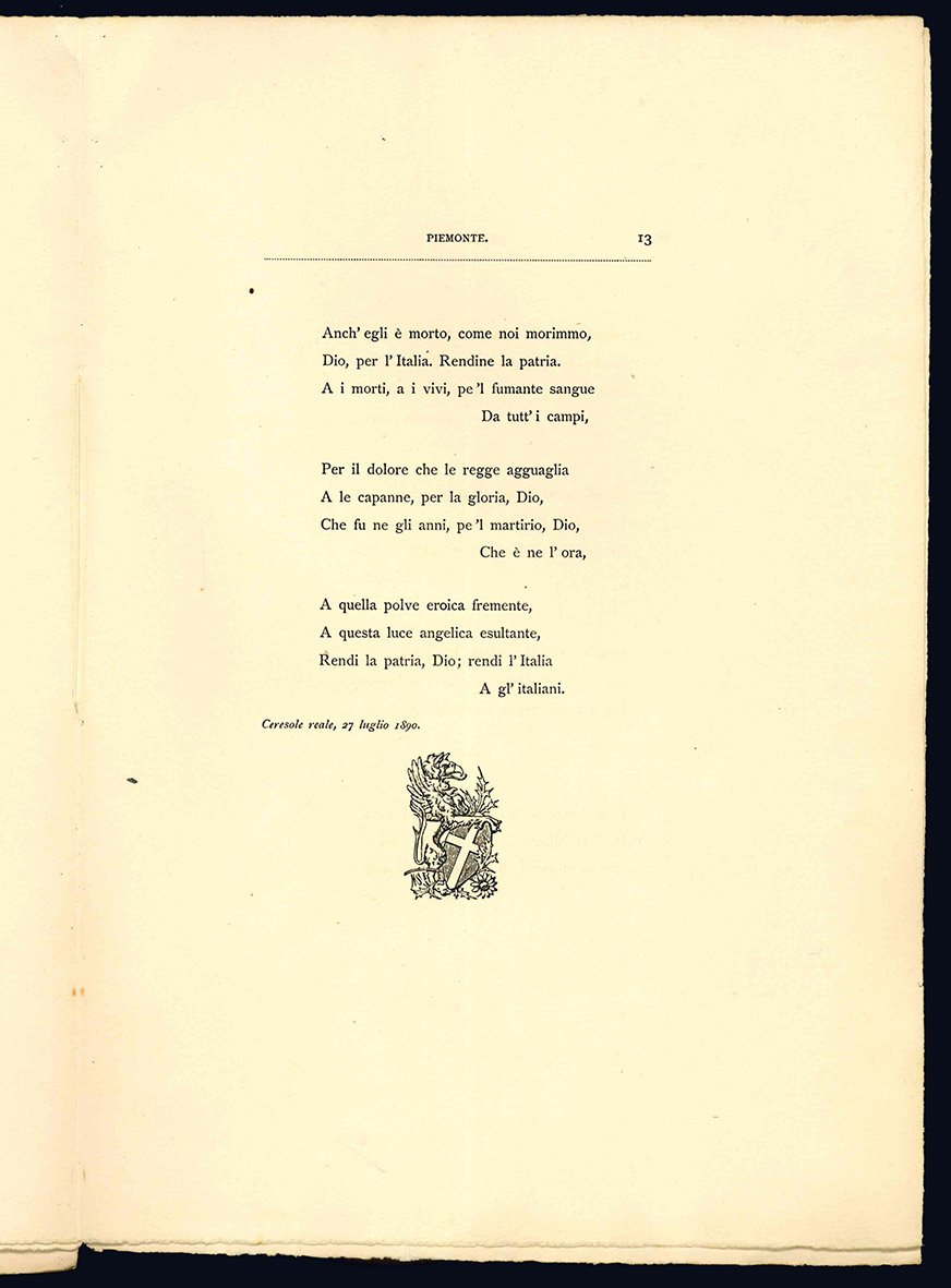 Prima edizione di questa famosissima ode carducciana, poi raccolta, nel 1899, nelle "Rime e ritmi".