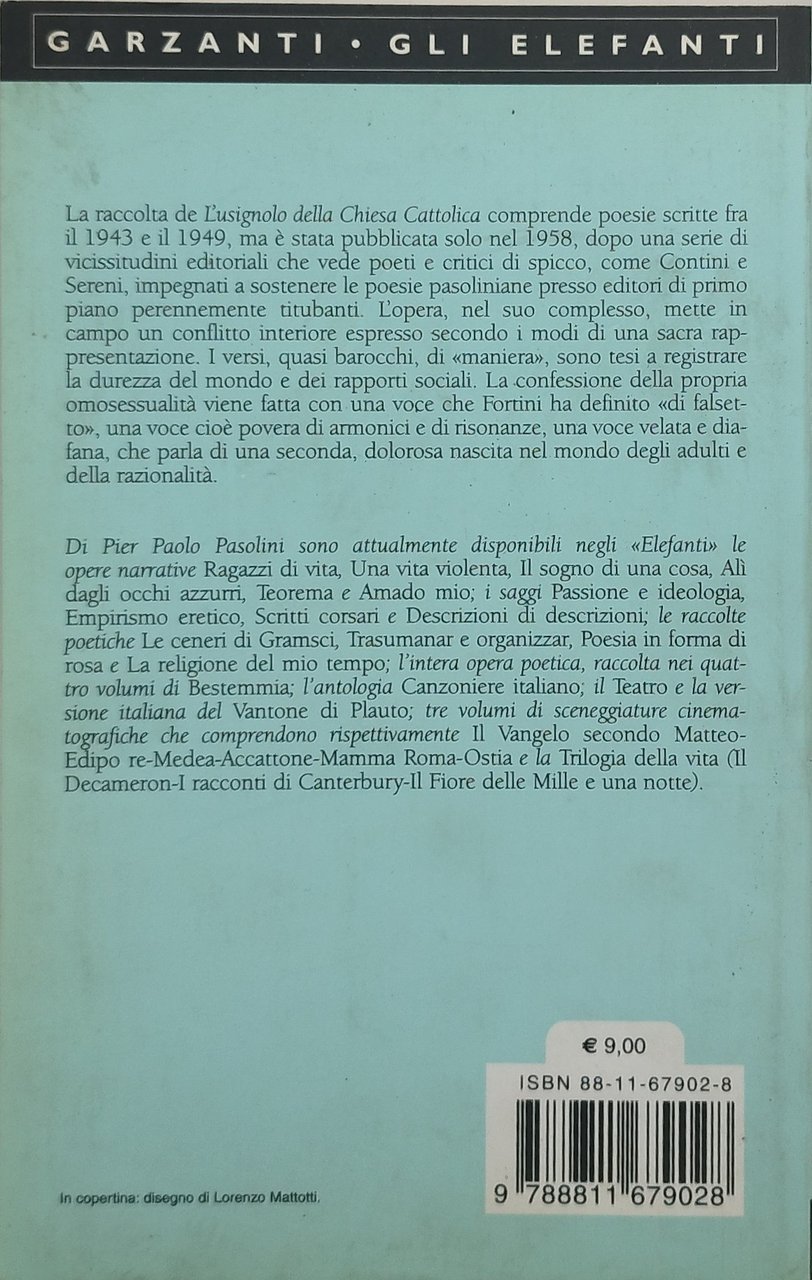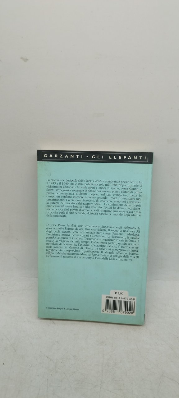 pier paolo pasolini pier paolo pasolini l'usignolo della chiesa cattolica. , garzanti gli elefanti 2004 italiano, 167 °°