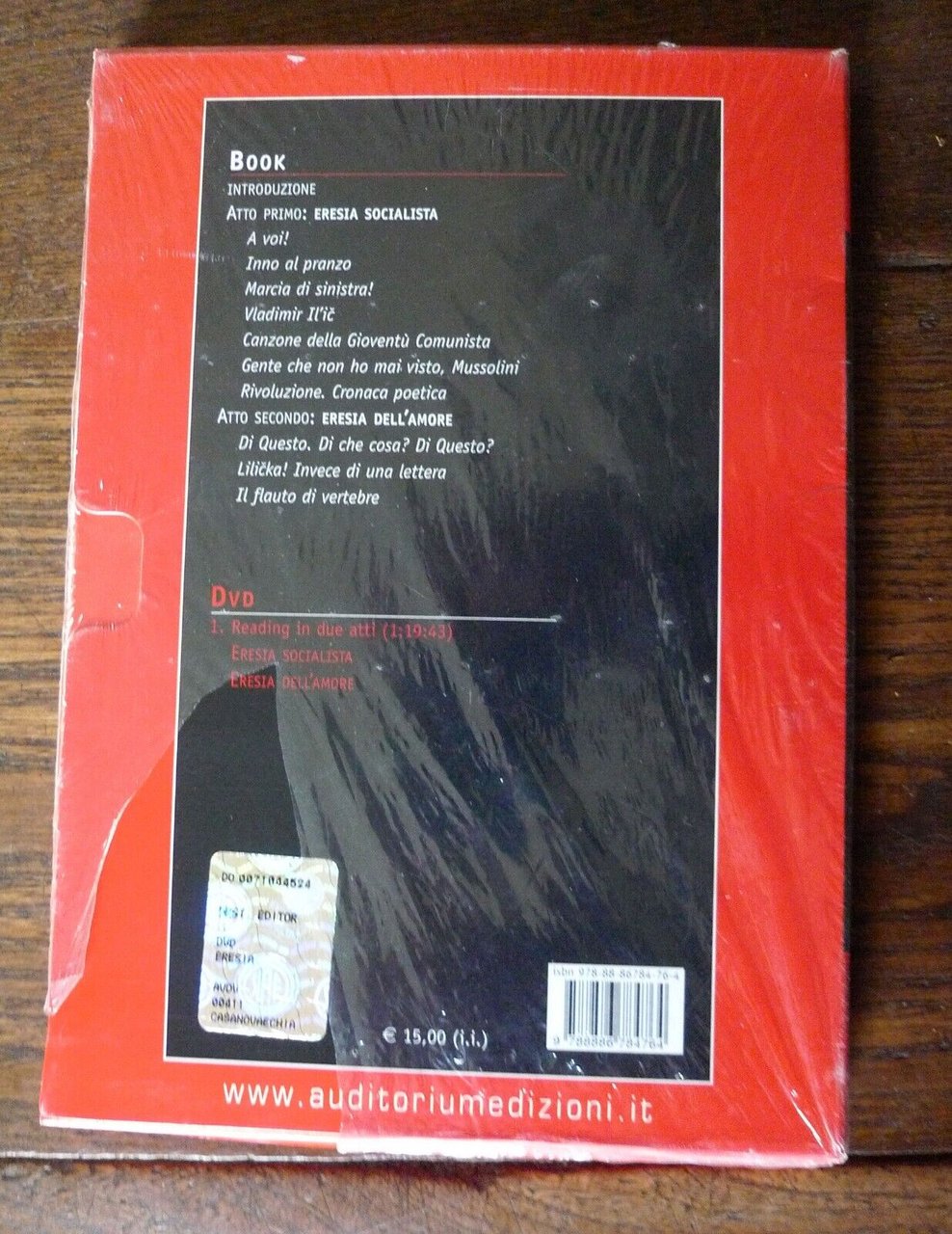 Pierpaolo Capovilla,MAJAKOVSKIJ - ERESIA.LIBRO+DVD.Pierpaolo Capovilla legge Vladimir V. Majakovskij.Musiche di Giulio Ragno Favero - chitarre,sintetizzatore, laptopKole Laca - pianoforte.Auditorium Edizioni, Milano 2011,brossura, custodia in cartoncino,19x13,5 cm., pp.48,ISBN: 978-88-86784-76-4,peso: g.200