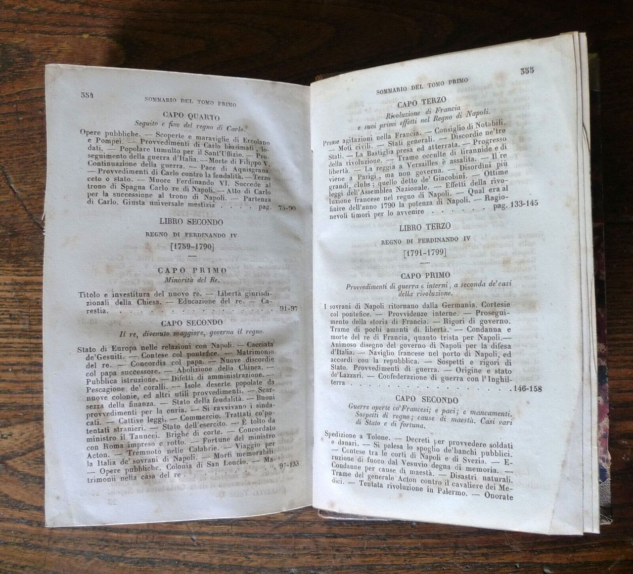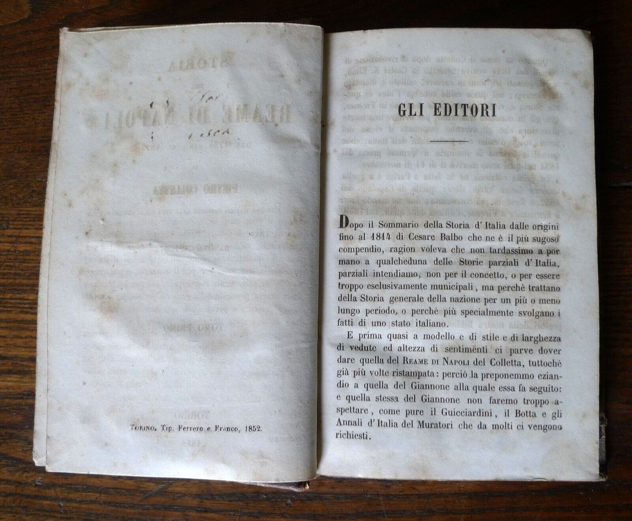 STORIA DEL REAME DI NAPOLIDAL 1734 SINO AL 1825DI PIETRO COLLETTAcon una notizia intorno alla vitadell'Autore scritta da Gino Capponi.TOMO PRIMO.[1 TOMO DI 2, OPERA INCOMPLETA]TORINO, CUGINI POMBA E COMPAGNIA, 1852,copertina rigida, rilegatura in mezza pelle,17,5x11,5 cm., pp.360tagli a spruzzo,NUOVA BIBLIOTECA POPOLARECLASSE II - STORIA,peso: g.300