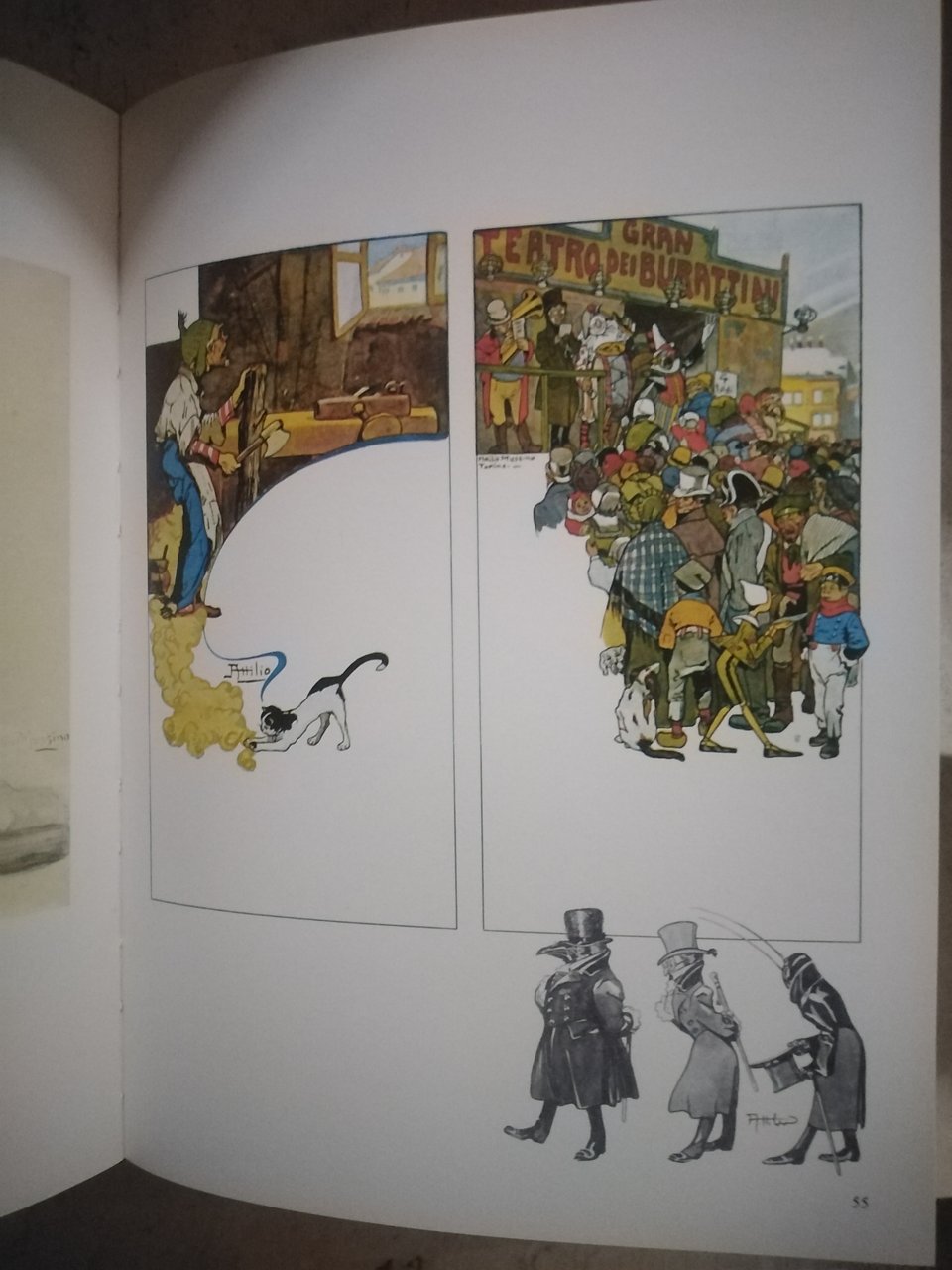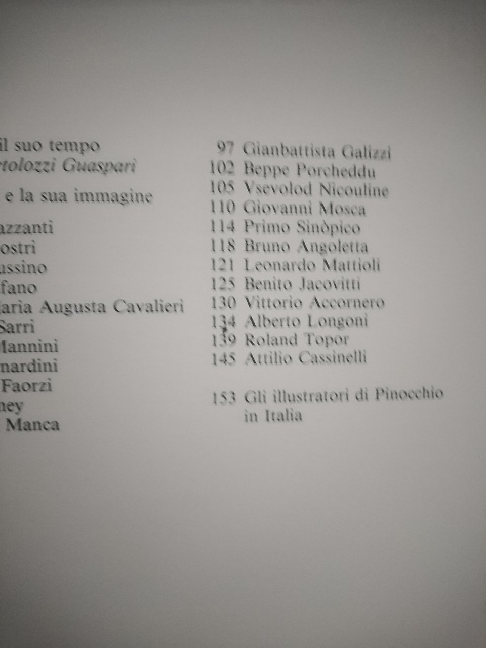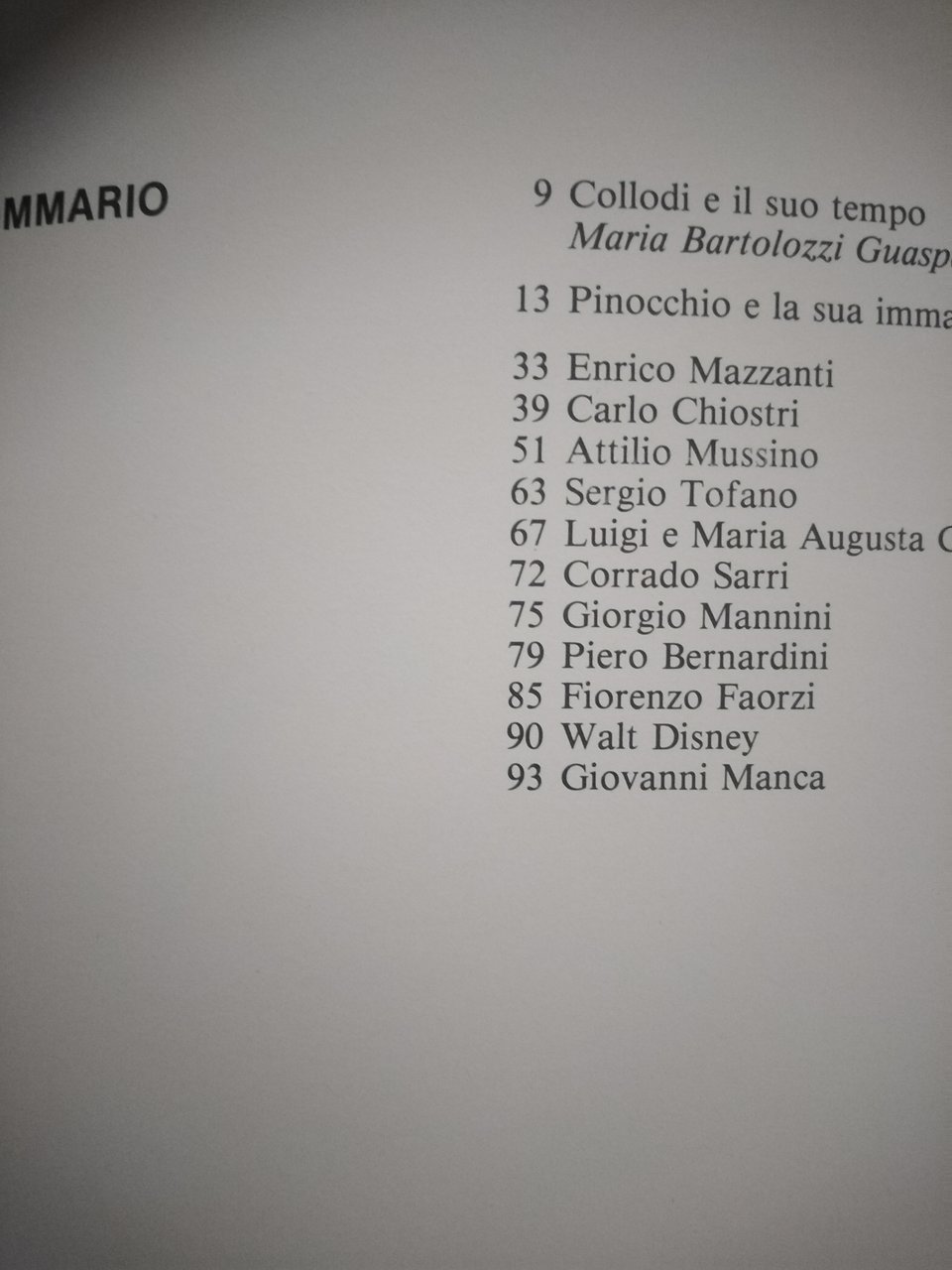 Cartonato illustrato, in 8°, pp. 154. Numerose illustrazioni in nero e a colori, nel testo e in tavole fuori testo. Testo su tre colonne. Una pagina e oltre di presentazione per ogni illustratore a cui seguono i disegni. A fine volume elenco degli illustratori italiani di Pinocchio. Quelli presenti nel volume sono: Mazzanti, Chiostri, Mussino, Tofano, L. e M. A. Cavalieri, Sarri, Mannini, Bernardini, Faorzi, Disney, Manca, Galizzi, Porcheddu, Nicouline, Mosca, Sinòpico, Angoletta, Mattioli, Jacovitti, Accornero, Longoni, Topor, Cassinelli. Ottime condizioni.
