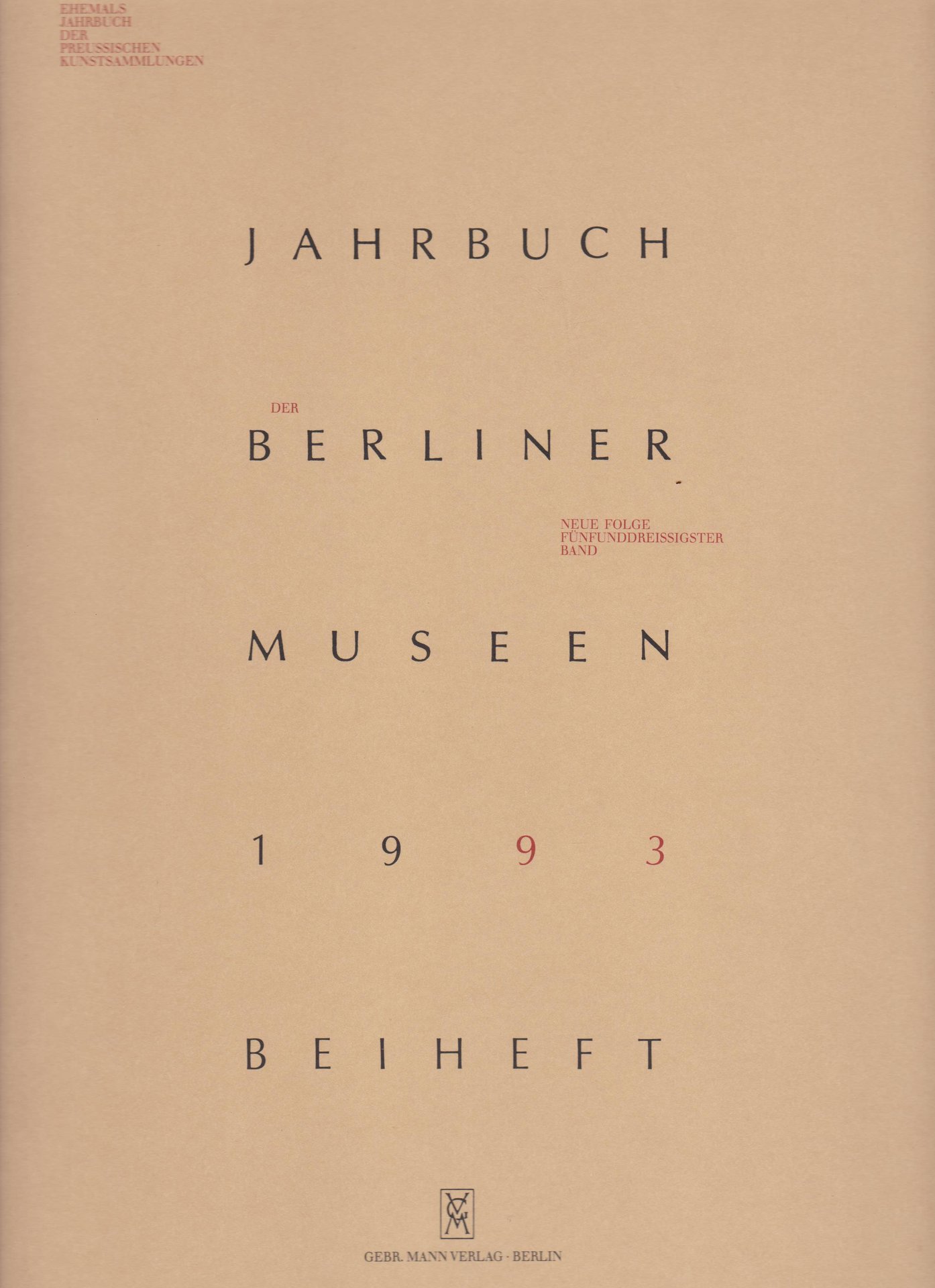 - (=Jahrbuch der Berliner Museen. (Ehemals Jahrbuch der Preussischen Kunstsammlungen). Neue Folge. Fünfunddreißigster Band, 1993. Beiheft).