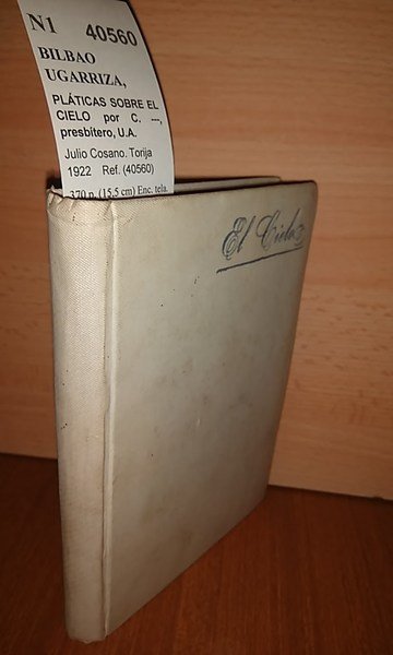 BILBAO UGARRIZA, Damián PLÁTICAS SOBRE EL CIELO por C. ---, presbítero, U.A. Julio Cosano. Torija 1922 370 p. (15,5 cm) Enc. tela. Sello de anterior propietario Col. Biblioteca religiosa, sección de predicación N1 (Ref.40560) religion catolicismo cristianismo