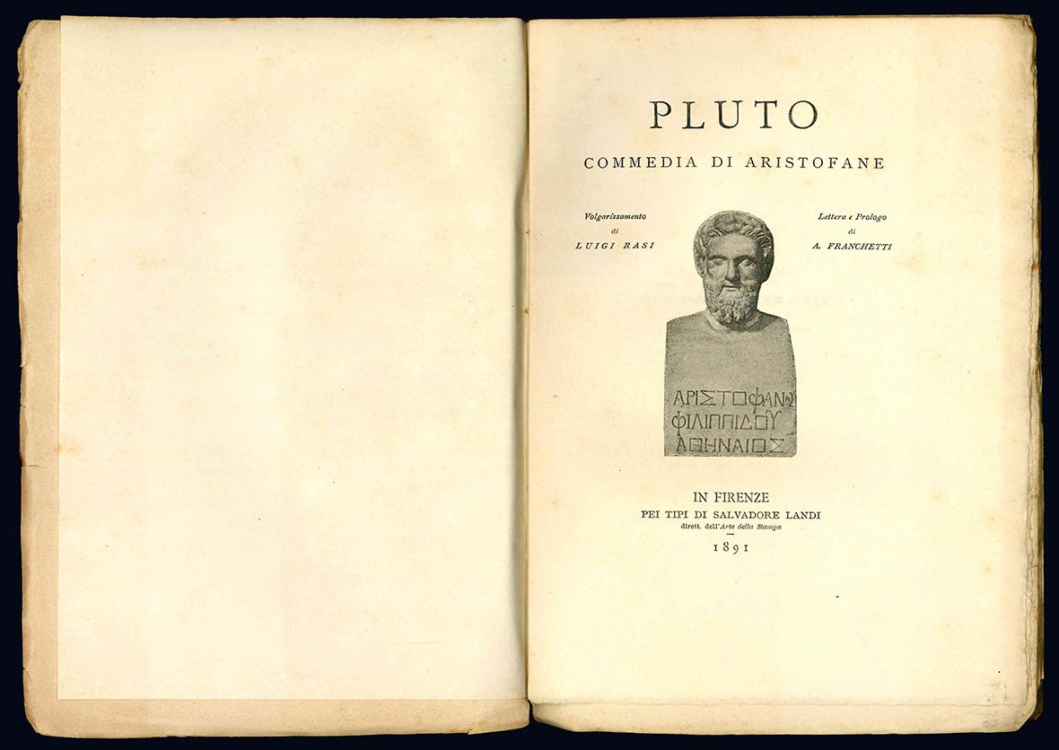 Pluto. Commedia di Aristofane. Volgarizzamento di Luigi Rasi. Lettera e prologo di A. Franchetti.