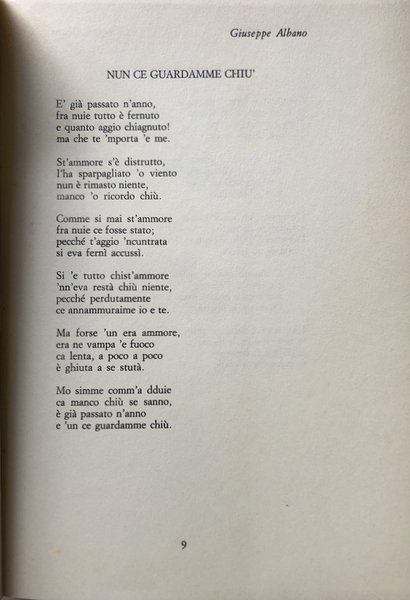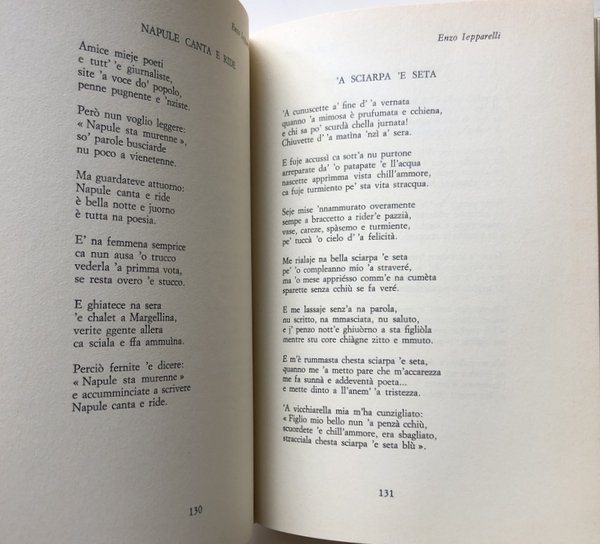 Soggetti: Poesia dialettale napoletana, Voci dialettali, Poesie, Raccolte poetiche, Dialetto napoletano, Antologie, Linguaggio popolare, Cultura, Poetica, Amore, Novecento, Dopoguerra, Satira, Canti, Canzoni, Inedite, Benedetto Croce, Ottocento, Fine 800, Giuseppe Albano, Raffaele Pisani, Enzo Iepparelli, Bruno Basurto, Spalato Bellerè, Renato Cammarota, Salvatore Cangiani, Giuseppe Caputo, Catello Coppola, Mario Cipriano, Concetta Cupelli, Anna De Luise, Luisa De Sieno, Lidya Di Capua, Roberto Di Roberto, Enzo D'Urso, Salvatore Grieco, Ino Fragna, Vincenzo Fasciglione, Enzo Mauro Esposito, Tina Insabato, Lello Lupoli, Vincenzo Morra, Iolanda Narciso, Antonietta Miele, Antonio Palladino, Gennaro Ottavo, Maria Pantano, Ciro Primavera, Enzo Valentini, Bruno Zapparrata, Bianca Sole, Antonio Silvestre, Mario Sgueglia, Antonella Rotella, Aniello Salvatore, Giuseppe Cangiano, Vittorio Astuti, Mario Sessa, Armando Ponsiglione, Ugo Izzolino, Vincenzo Sorsaja, Giuseppe Santagata, Antonietta Pagliarulo, Massimo Marinelli, Renato Fiore, Poeti napoletani contemporanei, Antologia poetica, Libri Vintage, Libri rari, fuori catalogo, Documenti, Neapolitan dialect poetry, Dialectal voices, Poems, Poetic collections, Neapolitan dialect, Anthologies, Popular language, Culture, Poetics, Love, Twentieth century, Post-war period, Satire, Songs, Unpublished Neapolitan poets, Fine art, Poetic anthology, Rare books, Out of print, Documents