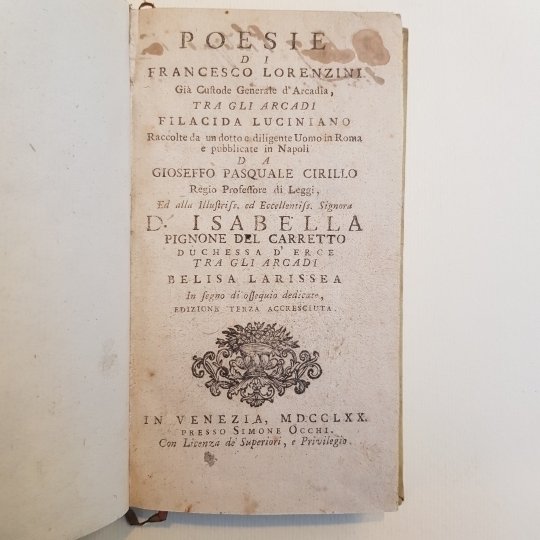 Poesie di Francesco Lorenzini. Già custode generale d'Arcadia, tra gli arcadi Filacida Luciniano.