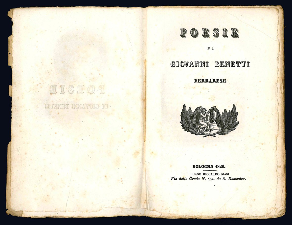 In 8vo (mm 213x140); pp. [4], 90, [2], con [1] c. di tav. fuori testo con ritratto dell'A. Piccolo fregio xilografico al frontespizio. Brossura editoriale stampata coeva. Copertina con margini leggermente lesionati, dorso danneggiato. Nota di possesso al margine superiore della copertina anterioreNel complesso buon esemplare.