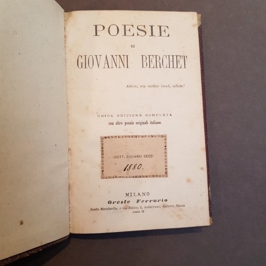 Poesie di Giovanni Berchet. Unica edizione completa con altre poesie originali italiane