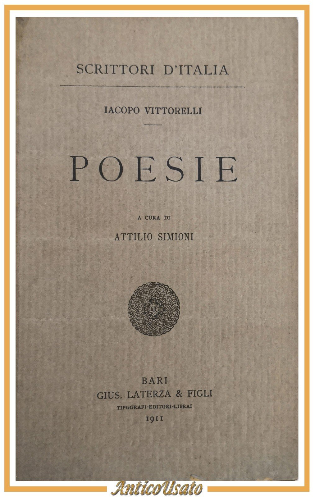 POESIE di Iacopo Vittorelli 1911 Laterza scrittori d'Italia Libro