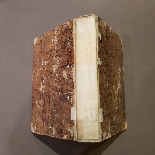In-16°, pp. 153, (5); XIV, (2), 183; 80, legatura in mezza pergamena e angoli, difetti sparsi alla legatura con lievi mancanze di carta ai piatti e agli angoli posteriori, ma legatra molto solida, esemplare fresco e in barbe. Parenti, p. 403.