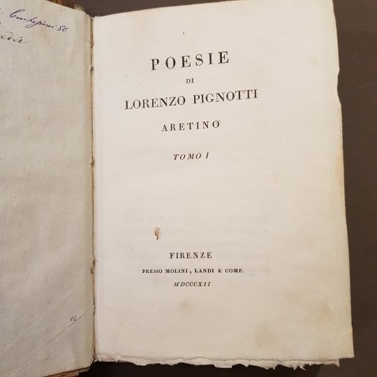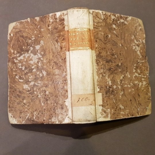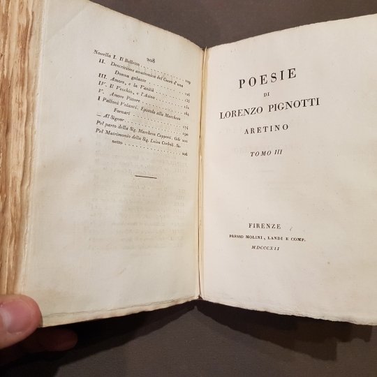 Tre tomi in un volume in 16°, pp. VI, 188, 208, 184, (2), legatura in mezza pergamena e angoli, titolo in oro su tassello al dorso