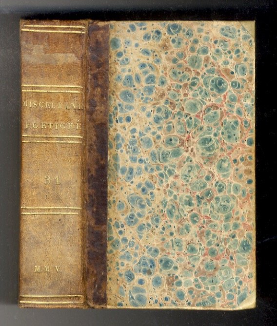 Firenze - Firenze - Prato - Firenze, dalla Società Tipografica C.C. - S.Usigli - Tipografia Aldina - Tipografia di Felice Le Monnier, 1826 - 1836 - 1838 - [s.d.], 4 titoli legati in un volume, in-16, legatura coeva alle edizioni in mezza pelle, titolo e filetti in oro al dorso, piatti in carta marmorizzata, pp. [4], 166 - 167, [1] - 72 - 108 - 24. Buone condizioni.
