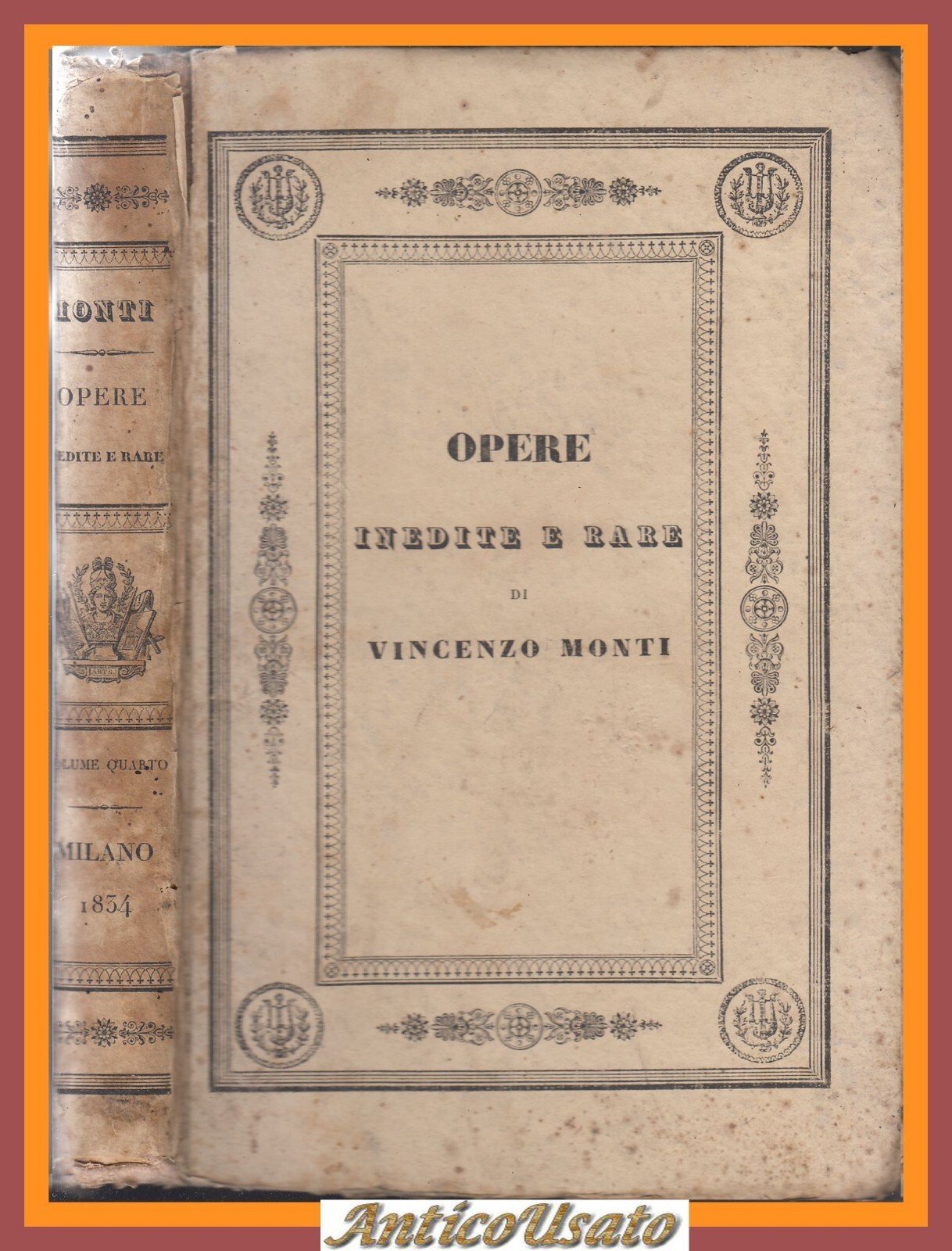 POESIE di Vincenzo Monti Opere Inedite e Rare volume IV 1833 libro antico