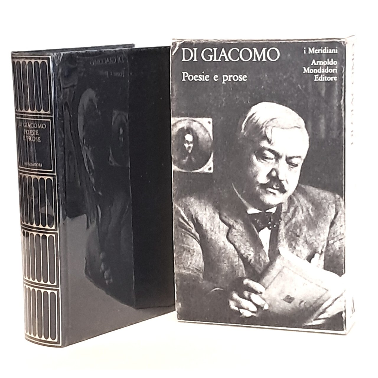 Seconda edizione nella collana I meridiani curata da Elena Croce e Lanfranco Orsini. Prefazione di Elena Croce. La presente edizione delle poesie e di una scelta rappresentativa delle prose e del teatro di Salvatore di Giacomo è strutturata come segue: a una prima parte comprendente le Poesie nella loro integrità - che non ponevano particolari problemi di filologia o di ordinamento trattandosi di riprodurre fedelmente la definitiva raccolta ricciardiana curata dal poeta nel 1927, e alla quale si erano già rifatti per l'edizione Mondadori nei "Classici contemporanei italiani" il Flora e il Vinciguerra - fa seguito l'antologia delle prose che abbiamo divise in tre gruppi: Novelle, Teatro e Cronache e memorie, preceduti dalla Pagina autobiografica che ben introduce proprio alle novelle accennando a quelle di genere tedesco con cui il Di Giacomo esordì, da lui poi raccolte in Pipa e boccale (1893) e di cui è dato il saggio più maturo con Brutus. Copertina in pelle con sovraccoperta di plastica e cofanetto. Pp. 1051. Ottime condizioni.
