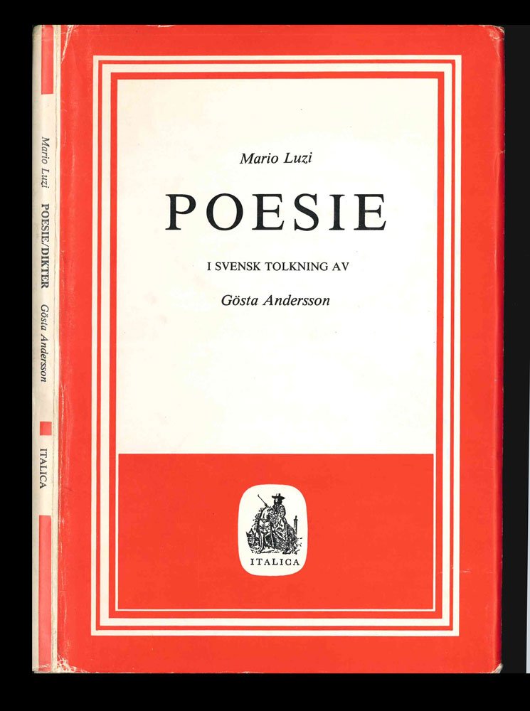 LIBROPrima edizione di questa traduzione, emissione rilegata in tela con sovracoperta.Ottimo esemplare, fresco e pulito (lievi segni del tempo alla sovracoperta, appena scolorita sul dorso).Raro volume dedicato a Luzi nella «Collana di poesia italiana» pubblicata a Stoccolma per l’editore Italica sotto gli auspici dell’Istituto Italiano di Cultura “C.M. Lerici”. Ne uscivano due emissioni, una di maggior pregio rilegata in tela (presente esemplare), l’altra in brossura, entrambe con la sovracoperta. Corposa raccolta di ventitré componimenti con la traduzione svedese a fronte di Gösta Andersson; introduzione originale del poeta, sempre presentata anche in traduzione, con il titolo «Ricerca della propria immagine».