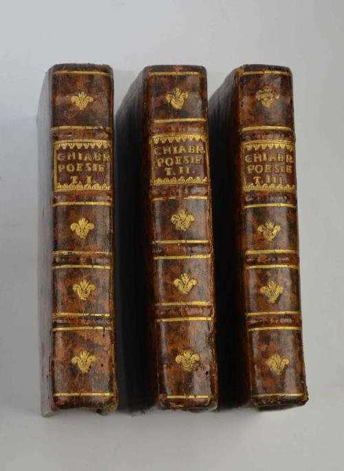 Tre volumi di cm. 14,5, pp. 1.000 ca. complessive. Ritratto del poeta all'antiporta del primo volume e bel frontespizio inciso a ciascuna delle tre parti. Solida ed elegante legatura coeva in piena pelle, dorso a piccoli nervi con titoli e ricchi fregi in oro. Tagli rossi. Pochi segni d'uso, ben conservato. Elegante edizione settecentesca.
