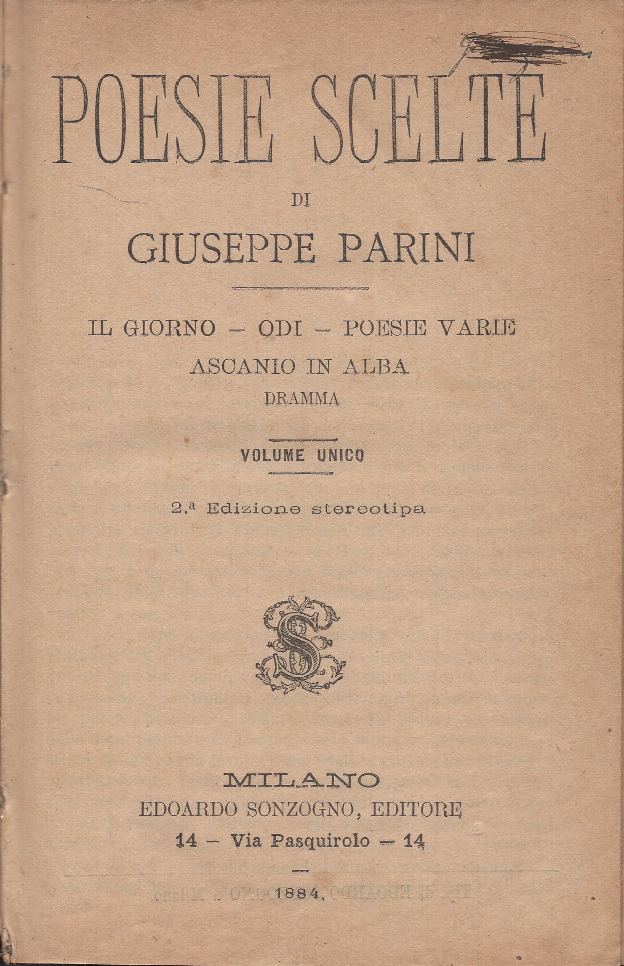 II edizione stereotipata. Firma di appartenenza e cancellatura all'occhietto