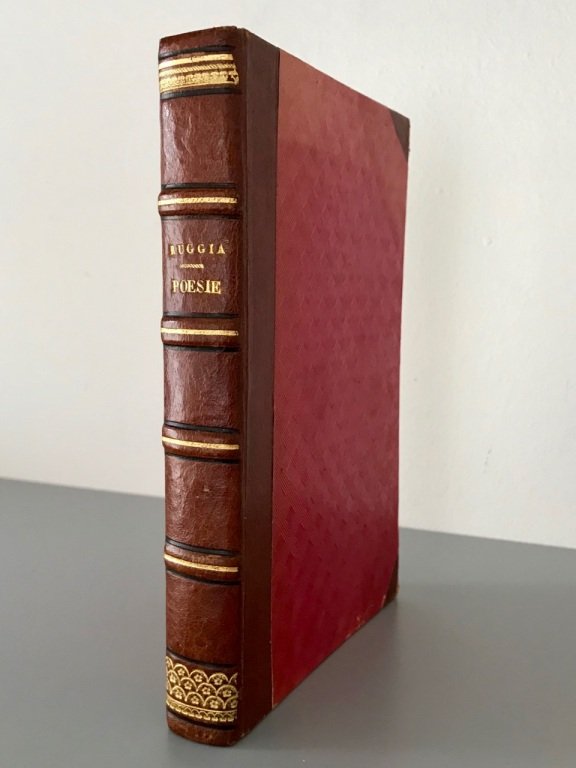 2 volumi in 1 in-8° (cm. 18,5), legatura coeva in mezza pelle e angoli, dorso con titolo in oro e filetti in oro e nero sui nervi; pp. VIII 165 [3], 133 [3] in ottimo stato e fresche. Edizione originale della prima raccolta poetica del Ruggia, ex gesuita che si dedicò alla letteratura. Cfr. Moschini IV, 120. Ottimo esemplare. (NF5)