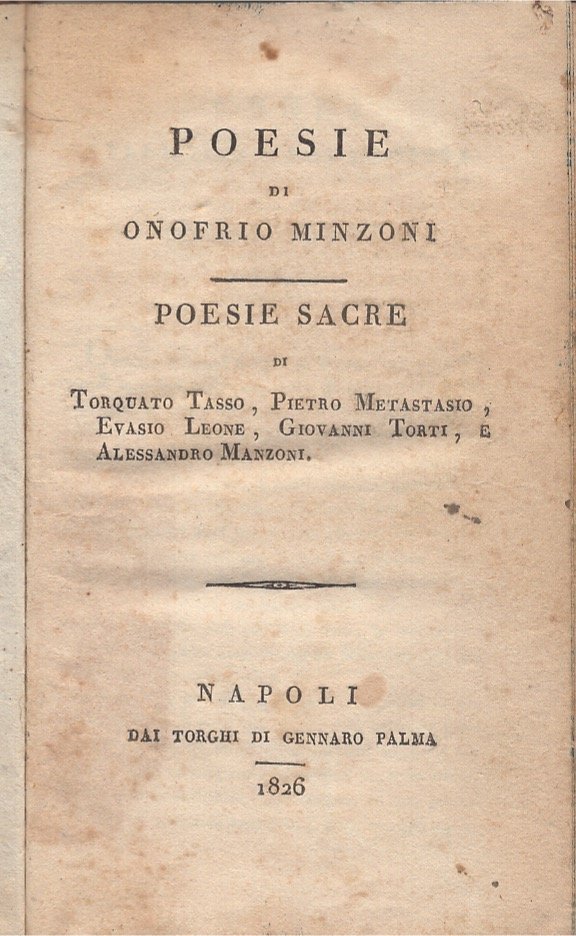 Poesie sacre di Torquato Tasso, Pietro Metastasio, Evasio Leone, Giovanni Torti e Alessandro Manzoni