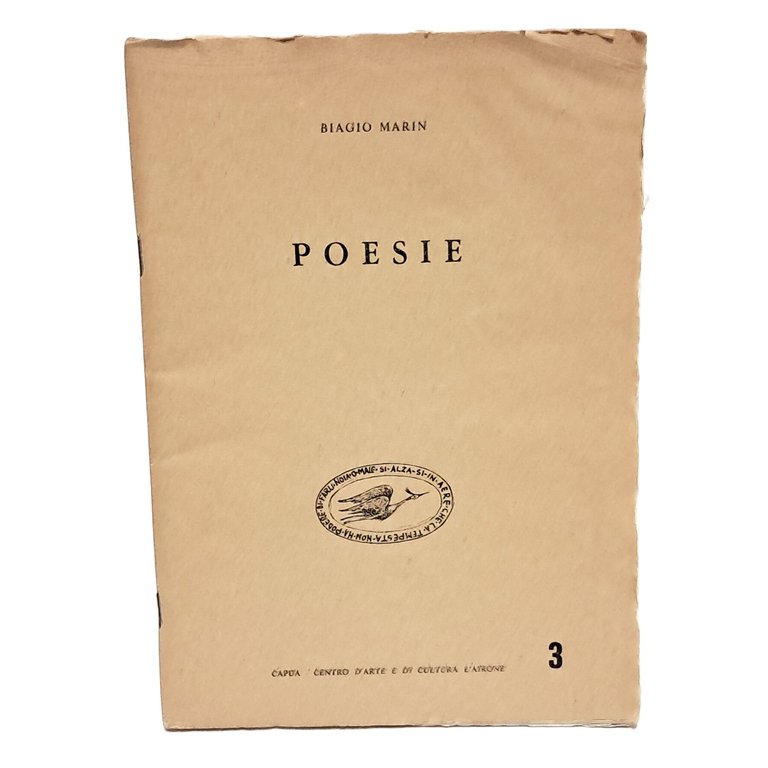 PRIMA EDIZIONE con dedica autografa dell'autore con prefazione di Giuseppe Centore Raccolta di versi in vernacolare con testo italiano in fondo pagina; carta tagliata a mano. Nel 1970 il poeta decise di pubblicare tutte le poesie scritte fino a quel momento in un’edizione ampliata de I canti de l'Isola. Negli anni Settanta le pubblicazioni dialettali La vita xe fiama (1972), A sol calao (1974), El critoleo del corpo fracasao dedicato a Pasolini (1976), In memoria (1978), con i contributi di Pasolini, Claudio Magris (con cui sviluppa un rapporto padre-figlio, testimoniato da una ricca corrispondenza[4]), Carlo Bo e Mario Fubini, e una raccolta di versi in italiano dal titolo Acquamarina, lo portano fuori da una dimensione regionale e lo fanno entrare in una posizione di primo piano nella poesia nazionale.Biagio Marin (Grado, 29 giugno 1891 – Grado, 24 dicembre 1985) è stato un poeta e scrittore italiano, nato in territori allora appartenenti all'Impero austro-ungarico. Nel 1978, dopo il suicidio, avvenuto l'anno prima, del suo amato nipote Guido, morì anche la moglie Pina; la dolorosa perdita dei suoi cari e il decadimento fisico iniziarono a pesare sul poeta, che diventò nel giro di pochi anni sordo e semicieco, ma aprirono nuove prospettive forse più cupe rispetto alla poetica precedente, come si può notare nelle ultime tre raccolte di poesie Nel silenzio più teso (1980), Poesie (1981), La vose de la sera (1985). Brossura. Pp. 63. Ottime condizioni.