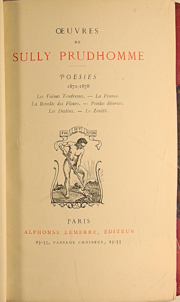 Paris Alphonse Lemerre, éditeur, sans date vers 1890, in/12, 268 pages, agréable reliure en demi-chagrin rouge, dos à nerfs, coins, doré sur tête.