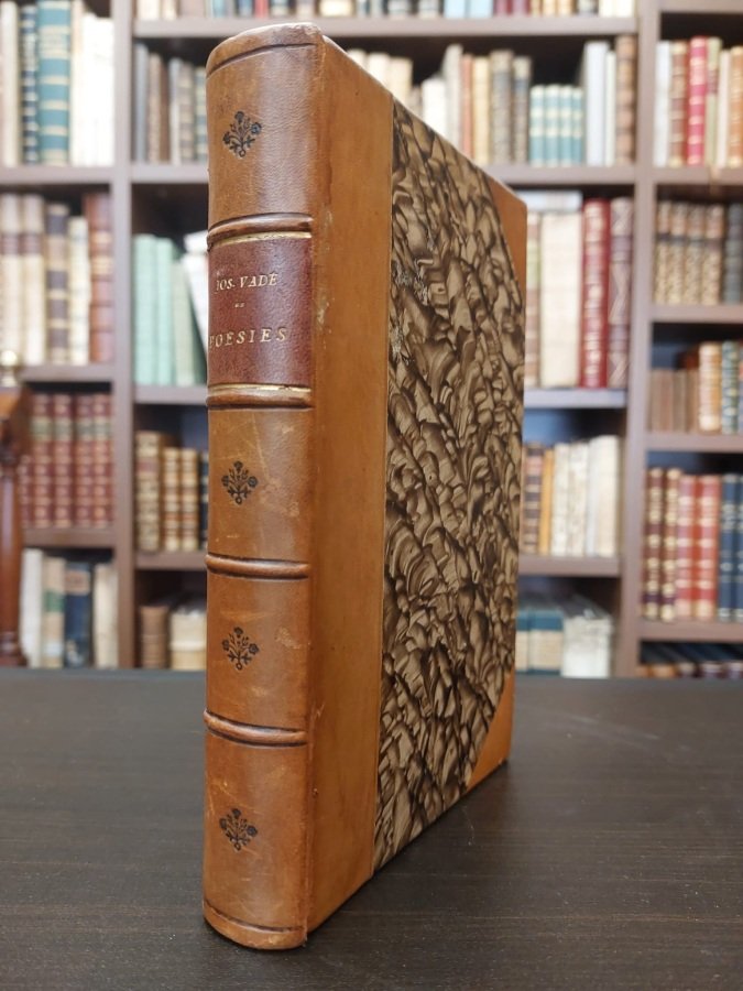 In-8° (cm. 20), elegante m. pelle coeva con piatti marmorizzati (piatti della brossura editoriale conservati), titolo in oro su tassello, filetti in oro e a secco e fregi in nero al dorso (lievissimi segni d'usura); pp. XXXVI 275 [5] in ottimo stato, con 1 tavola di manoscritto in facsimile ripiegata, 1 tavola di ritratto (Lalauze) e 1 tavola con graziosa vignetta protette da veline, testina sempre con velina, culs de lampe e fregi. Collana Petits poètes du XVIIIe siècle. Bell'esemplare. (NH2)
