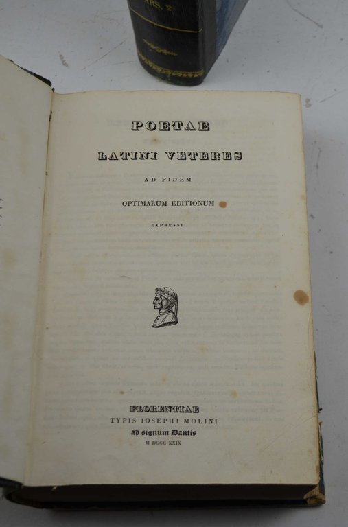 Due volumi di cm. 23, pp. (8) 1549 (2) a numerazione continua. Legatura coeva in mezza pelle, dorsi lisci con titoli e filetti in oro. Esemplare genuino ed in buono stato di conservazione. Volumi che raccolgono le maggiori opere dell'antichità latina. Brunet (IV, 759): "Volume. imprimé avec soin.". La prefazione di Giuseppe Molini informa sulle fonti cui si attinse per compilare questa raccolta.