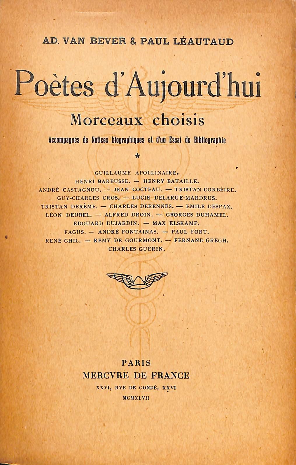1: Guillaume Apollinaire... : morceaux choisis : accompagnes de Notices biographiques et d'un Essai de bibliographie 299 p. ; 19 cm. 843 - Ba Buono (Good)