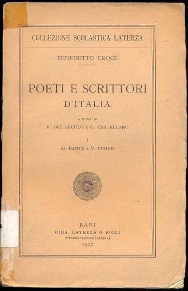 Poeti e scrittori d'Italia. A cura di F. Del Secolo e G. Castellano . Primo volume: Da Dante a Cuoco.