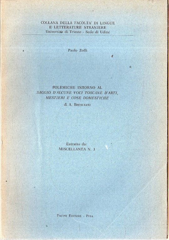 Polemiche intorno al saggio d'alcune voci toscane d'arti, mestieri e cose domestiche di A. Bresciani