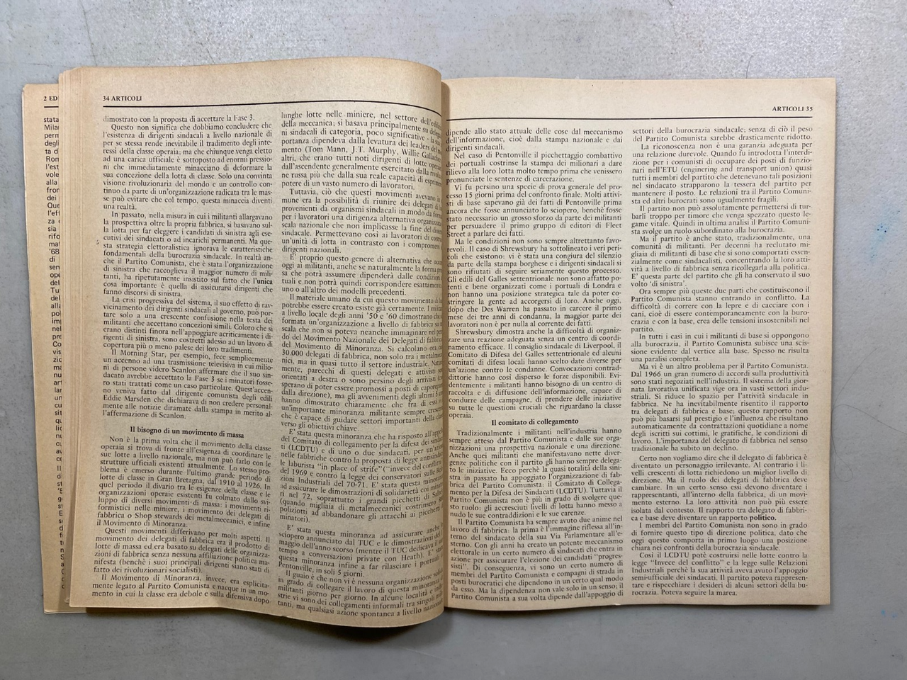 De Michelis, Rota, Nagliati, Paulantzas, Arru, Lambert e altriPOLITICA COMUNISTA N°6/Gen-AprRivista bimestrale dell’Organizzazione Comunista Avanguardia OperaiaAvanguardia Operaia, Milano, 1974Rivista, 27x20,5 cm, pp. 96Con illustrazioni a foto in bianco e nero in copertina Peso: g. 178Cod: 4853CONDIZIONI DELLA RIVISTA:In buono stato. Pagine ingiallite, la stampa non si presenta completamente uniforme. Copertina leggermente usurata ai bordi. Il retro presenta delle macchie.