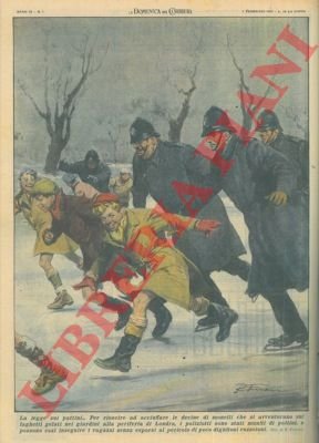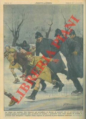 Poliziotti muniti di pattini acciuffano i monelli che si avventurano sui laghetti gelati nei giardini alla periferia di Londra.