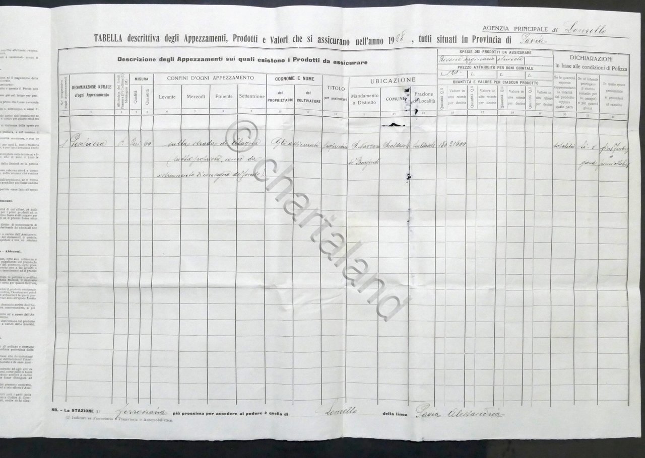 Polizza Assicurazione contro danni Grandine - Società La Fenice - 1928