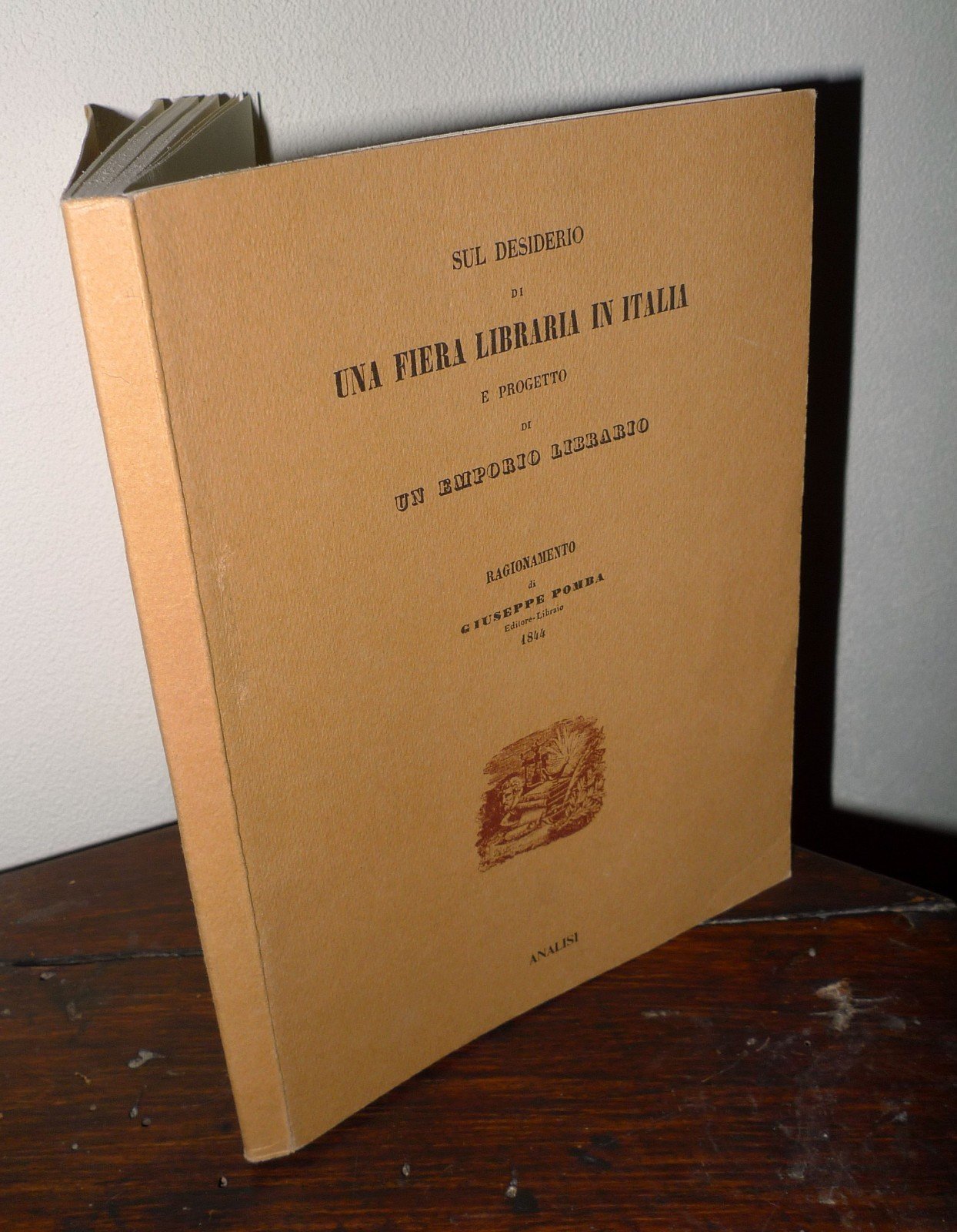 SUL DESIDERIO DI UNA FIERA LIBRARIA IN ITALIAE PROGETTO DI UN EMPORIO LIBRARIO.RAGIONAMENTO DI GIUSEPPE POMBA Editore Libraio 1844.Edizioni Analisi, Bologna 1988,ristampa anastatica,brossura, 21x15,5 cm., pp.91edizione riservata ai partecipanti allaseconda Conferenza Nazionale dei Beni Librarinel dicembre 1988 in Bologna,peso: g.300cod.9968CONDIZIONI DEL LIBRO: come nuovo