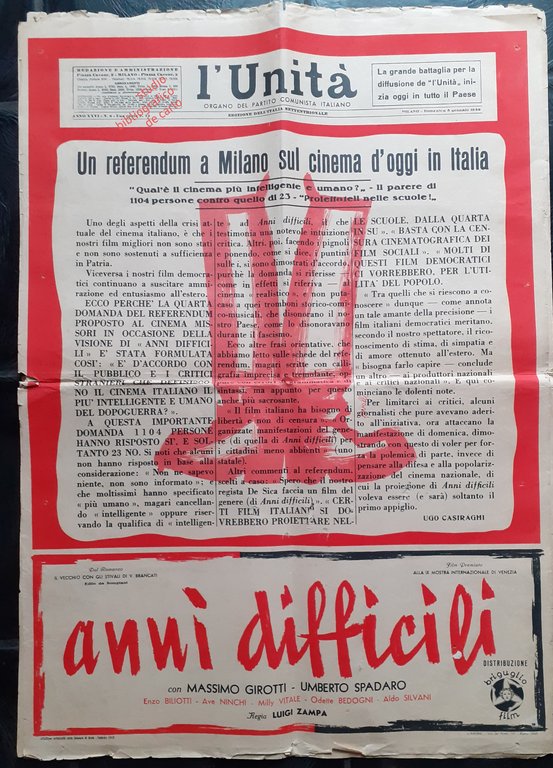 Poster film " anni difficili" premiato alla IX mostra internazionale di Venezia 1948
