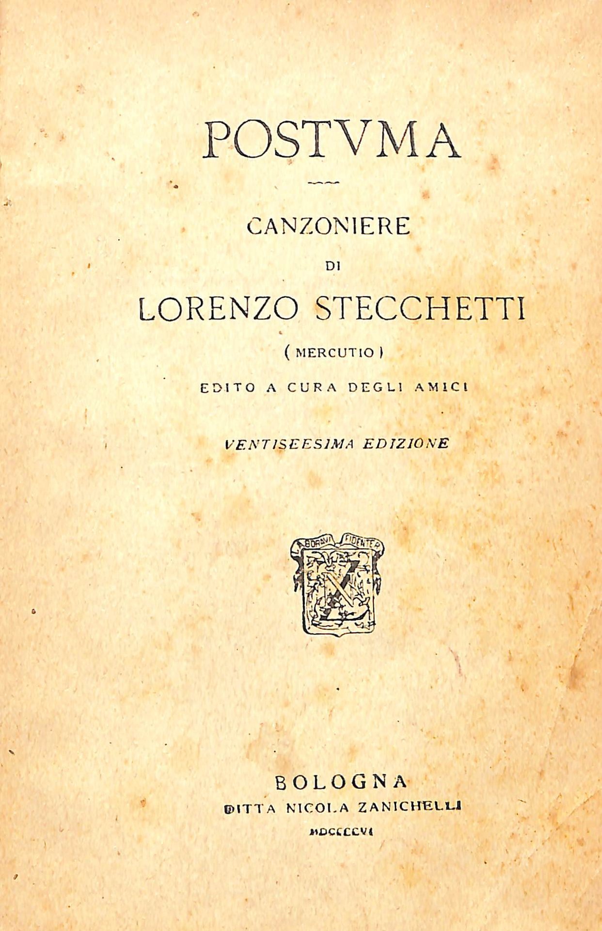 Canzoniere di Lorenzo Stecchetti (Mercutio). 851 LOC – Ba In Ottavi (15-23cm ) Buono (Good) Buono